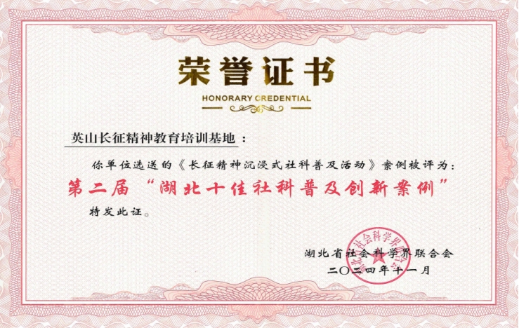 英山長(zhǎng)征精神教育培訓(xùn)基地沉浸式社科普及活動(dòng)獲評(píng)第二屆湖北十佳社科普及創(chuàng)新案例