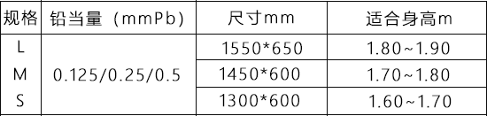 內置材料采用含鉛、無鉛兩種防輻射材料,用戶可選訂,面料采用白色或黑色,耐磨、防水、可撕裂。